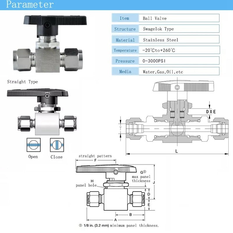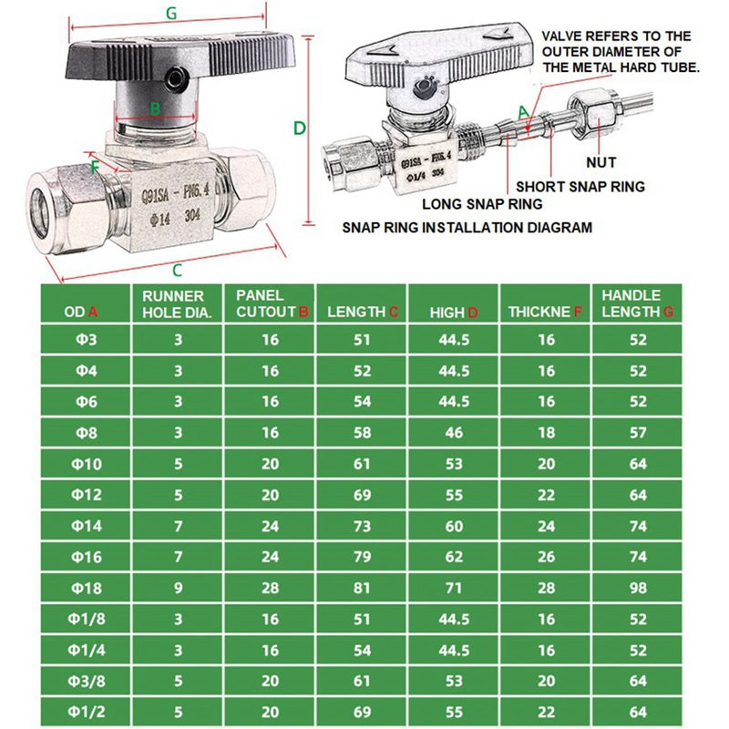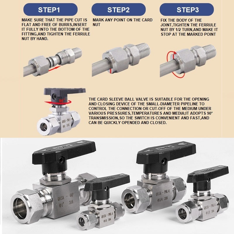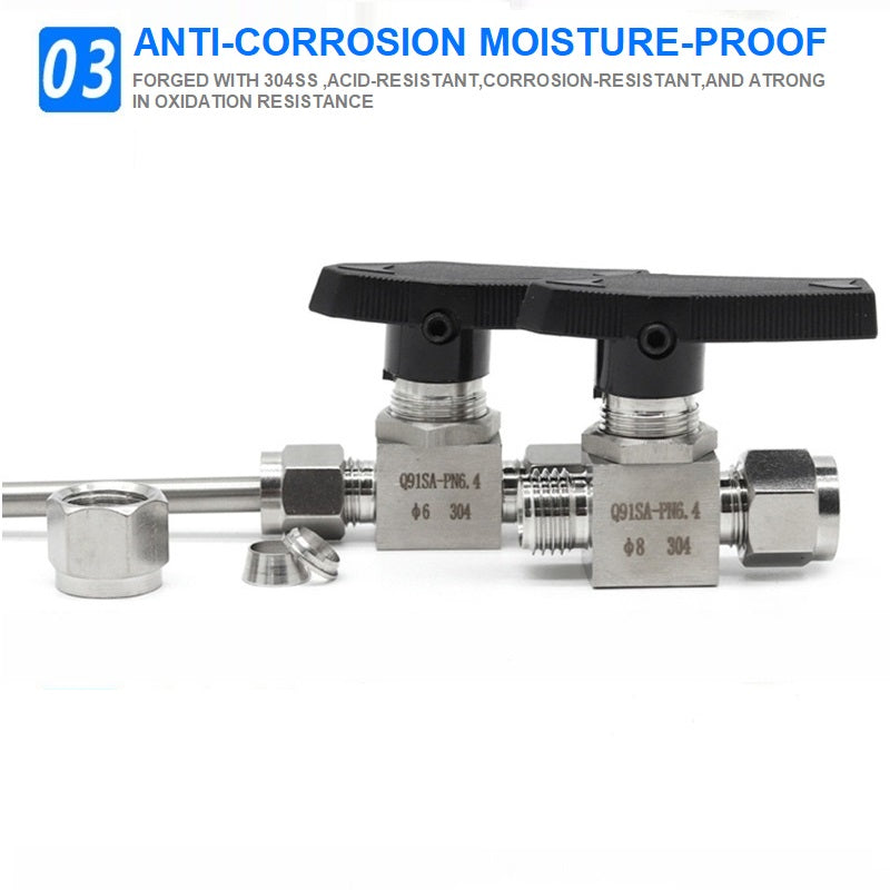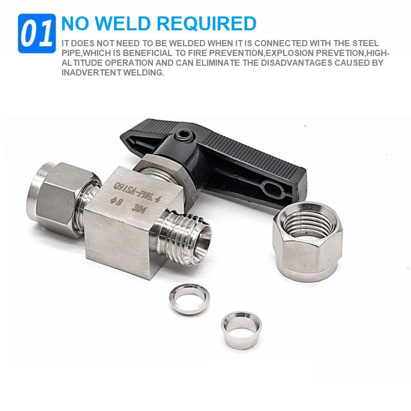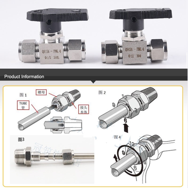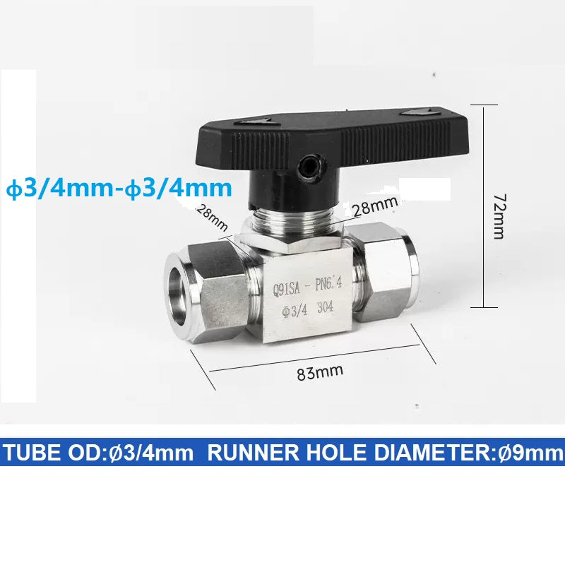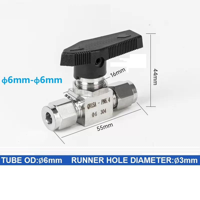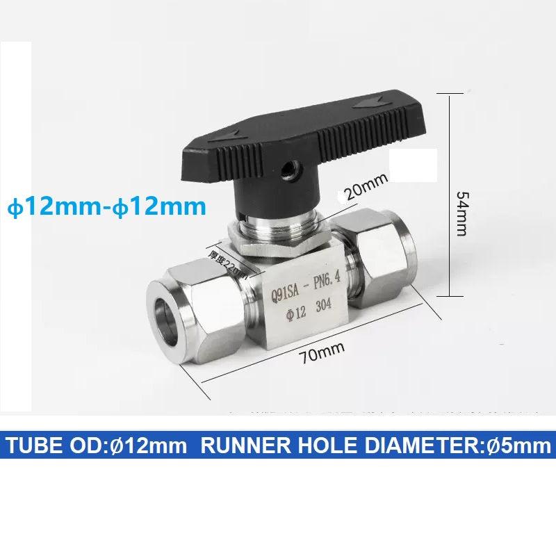304 Stainless steel Card Sleeve Ball Valve Q91SA PN6.4 Straight-Through Panel Instrument Gas Source Switch Ring Ball Valve