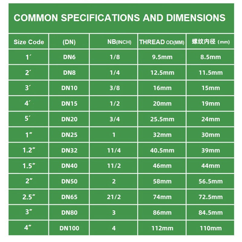 1/8" 1/4" 3/8" 1/2"