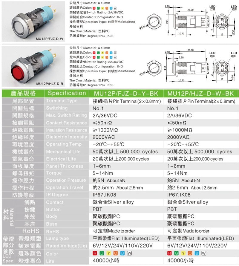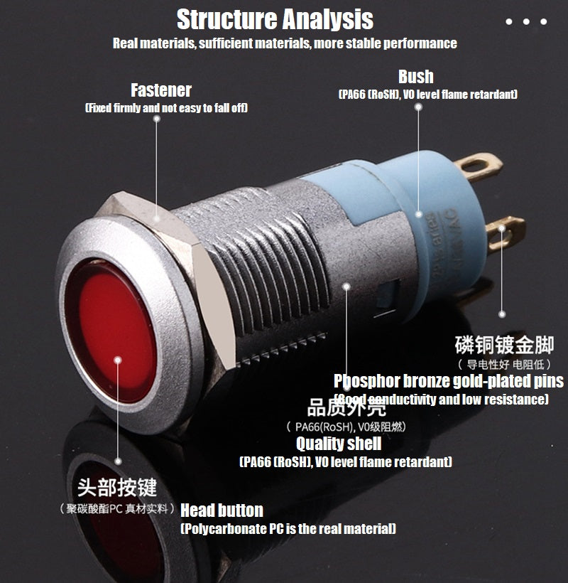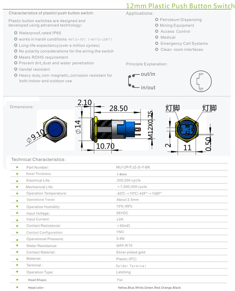 • Type: 12mm 1NO plastic button