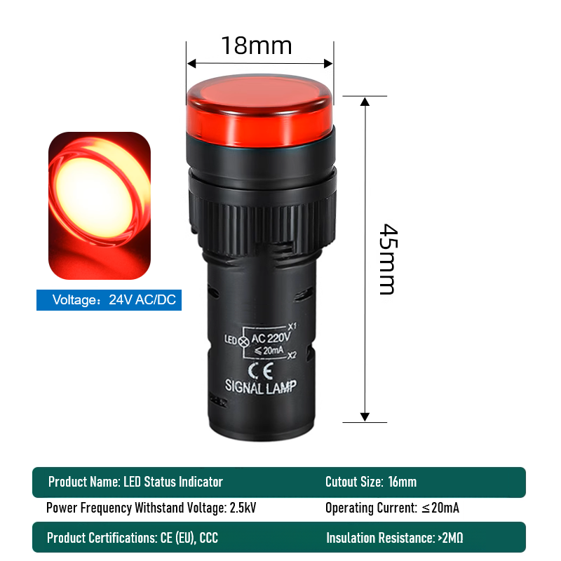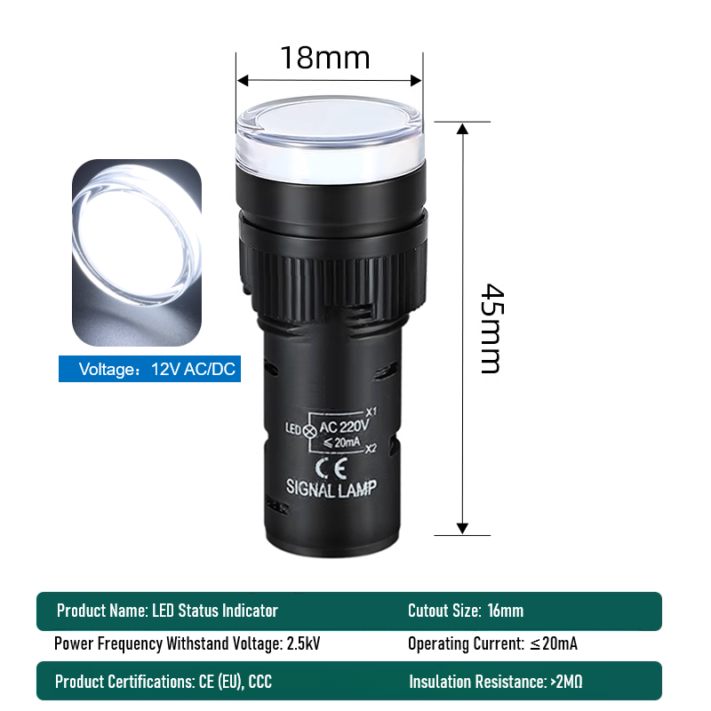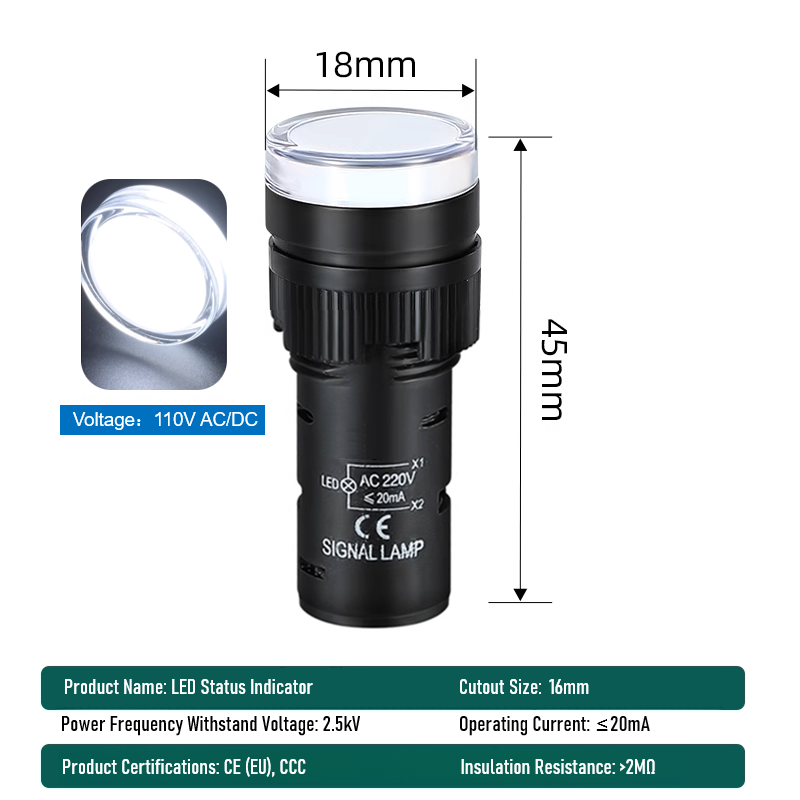 | Color: | Red/Green/Yellow/White LED (multi-color for status indication) |