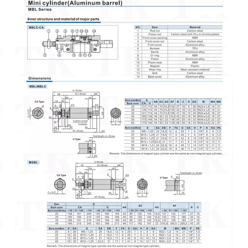 | Product Name: | MBL40 Aluminum Alloy MINI Pneumatic Cylinder |