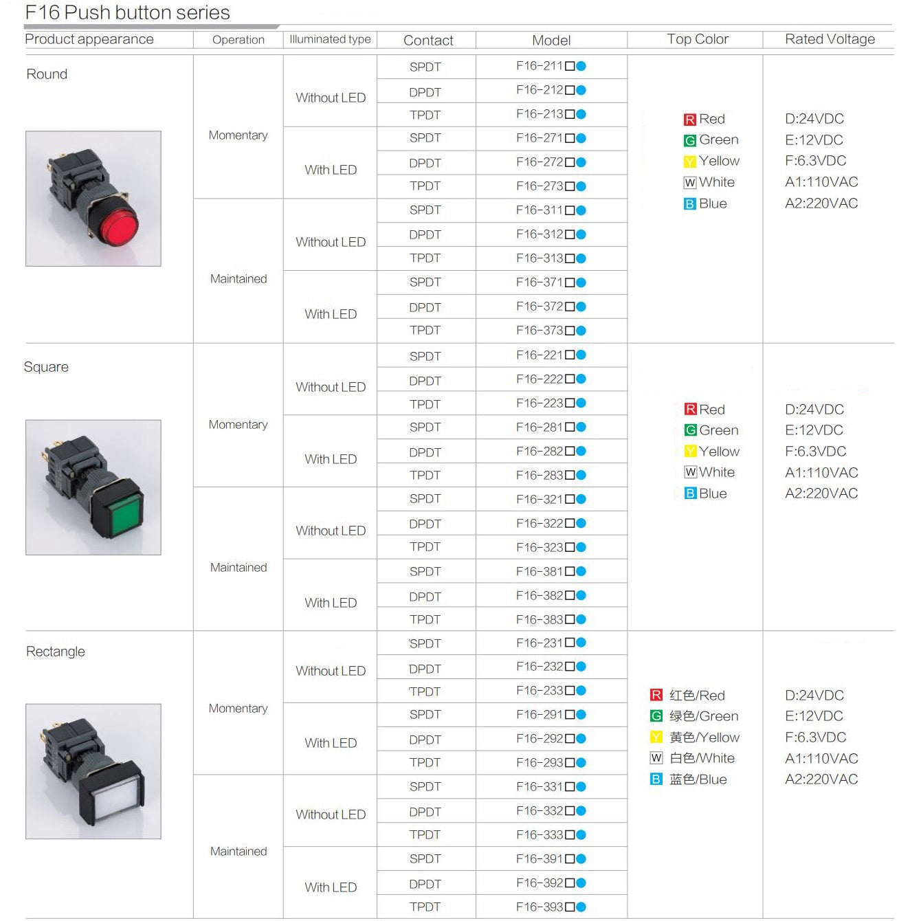 | Mounting Hole Size: | 16mm Square Button Switch |