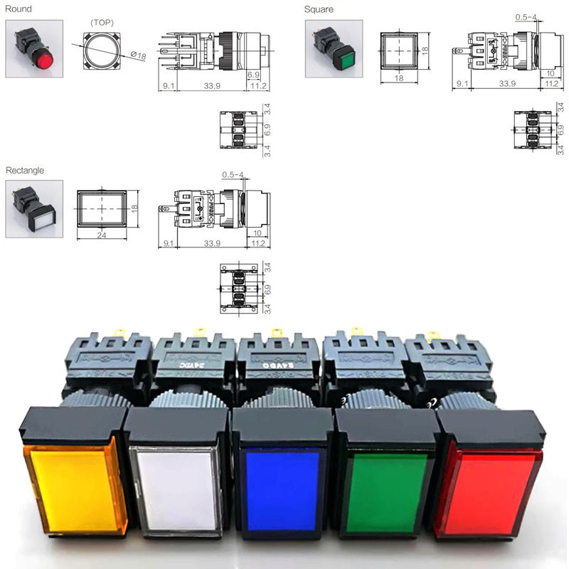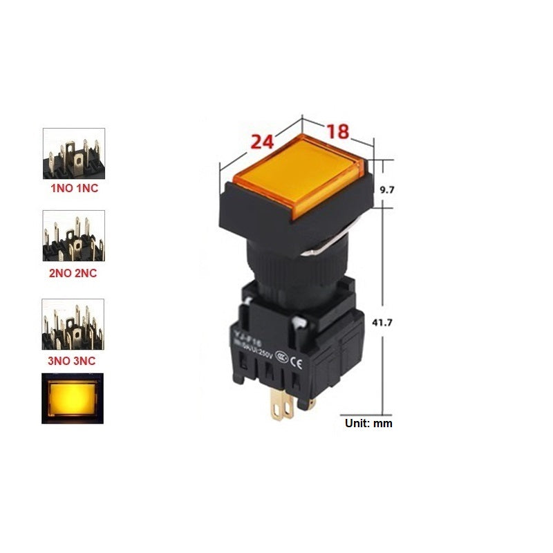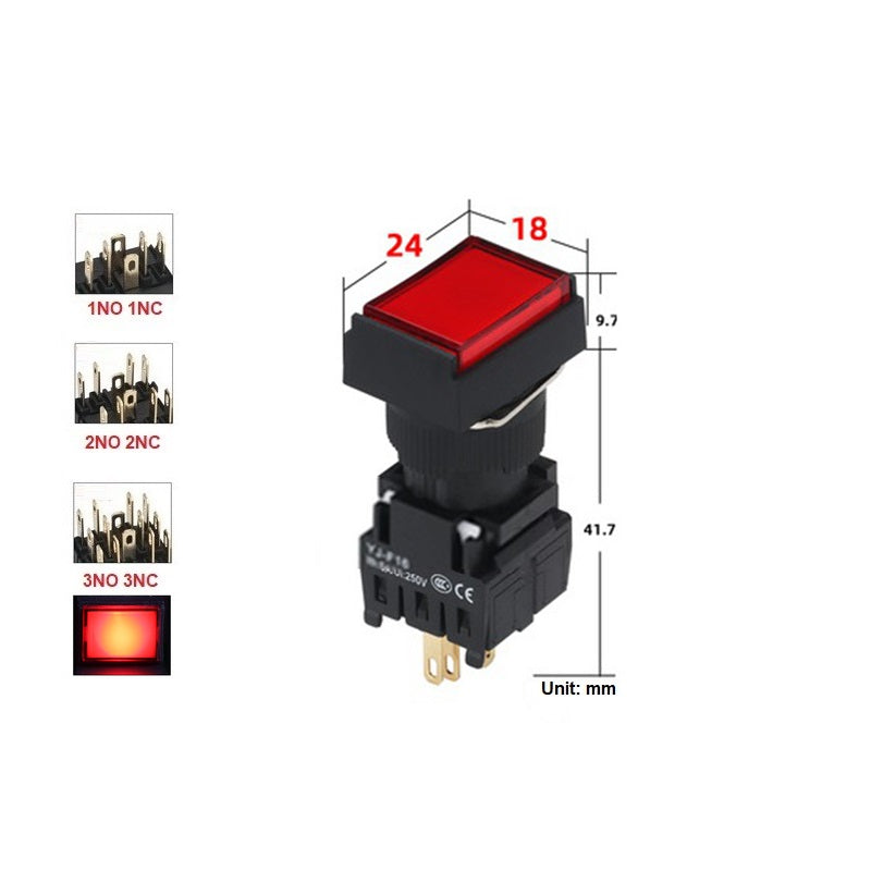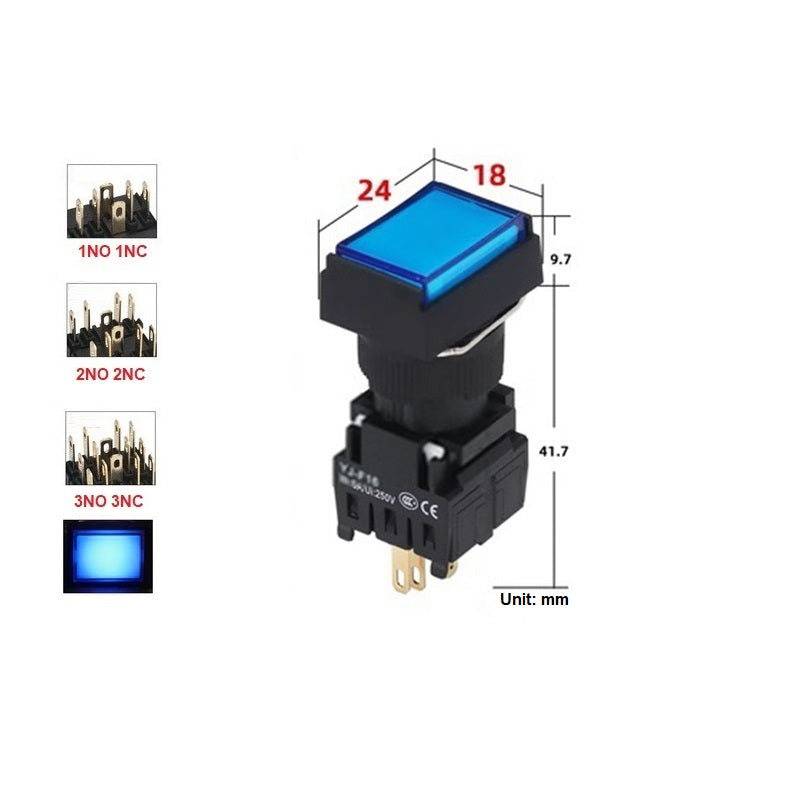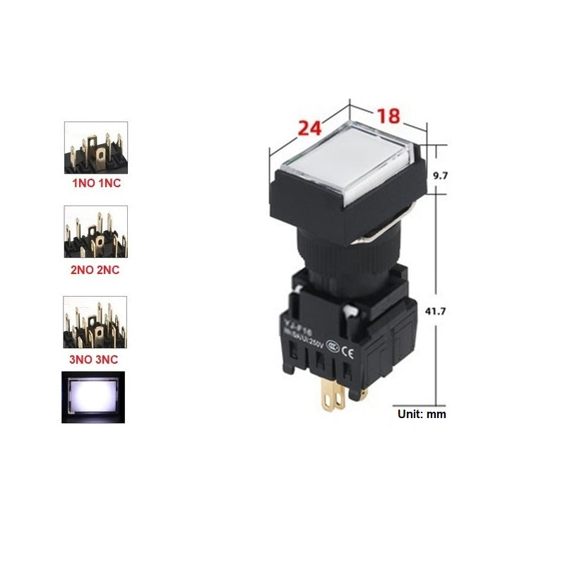 Mounting Hole Size: 16mm Rectangle Button Switch